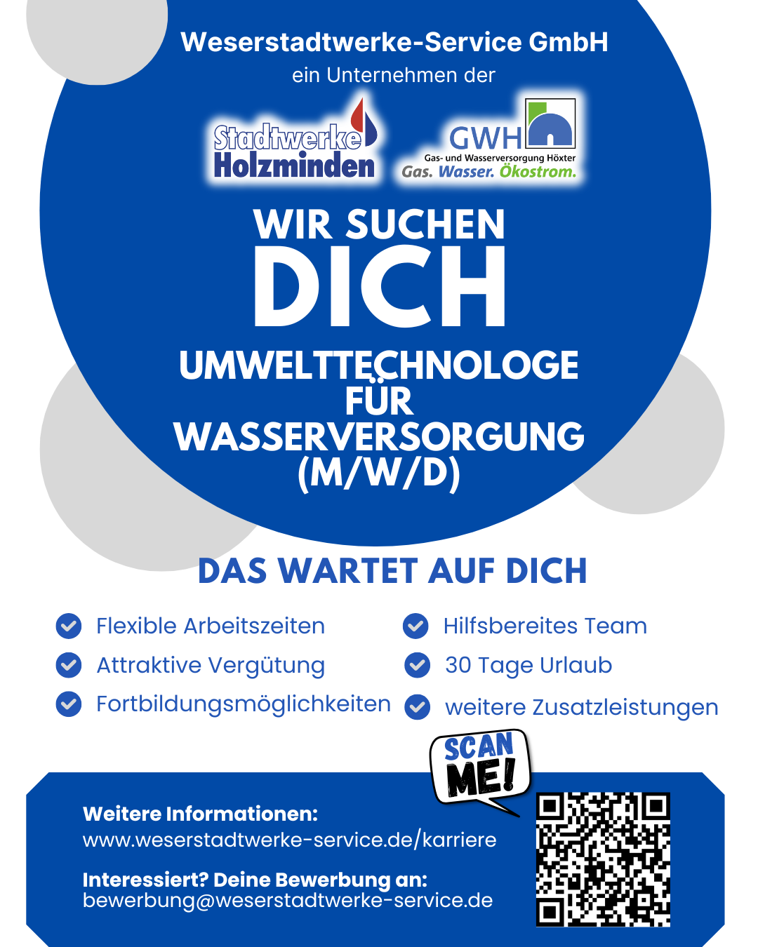 Du möchtest einen wichtigen Beitrag zur Sicherstellung unserer Trinkwasserversorgung leisten? Dann werde Teil unseres Teams für Anlagen und Werke! In deiner Ausbildung betreust du unsere Wassergewinnungs- und Verteilungsanlagen, führst Wartungen und Instandhaltungen an Filter- und Desinfektionsanlagen durch und überwachst die Wassergüte. Du arbeitest eng mit Laboren zusammen, um die Trinkwasserqualität sicherzustellen, und überwachst unsere Wasserschutz- und Einzugsgebiete. Zudem unterstützt du bei der Planung und dem Bau technischer Anlagen und bist verantwortlich für die Dokumentation und Reparaturen an elektrischen Anlagen.